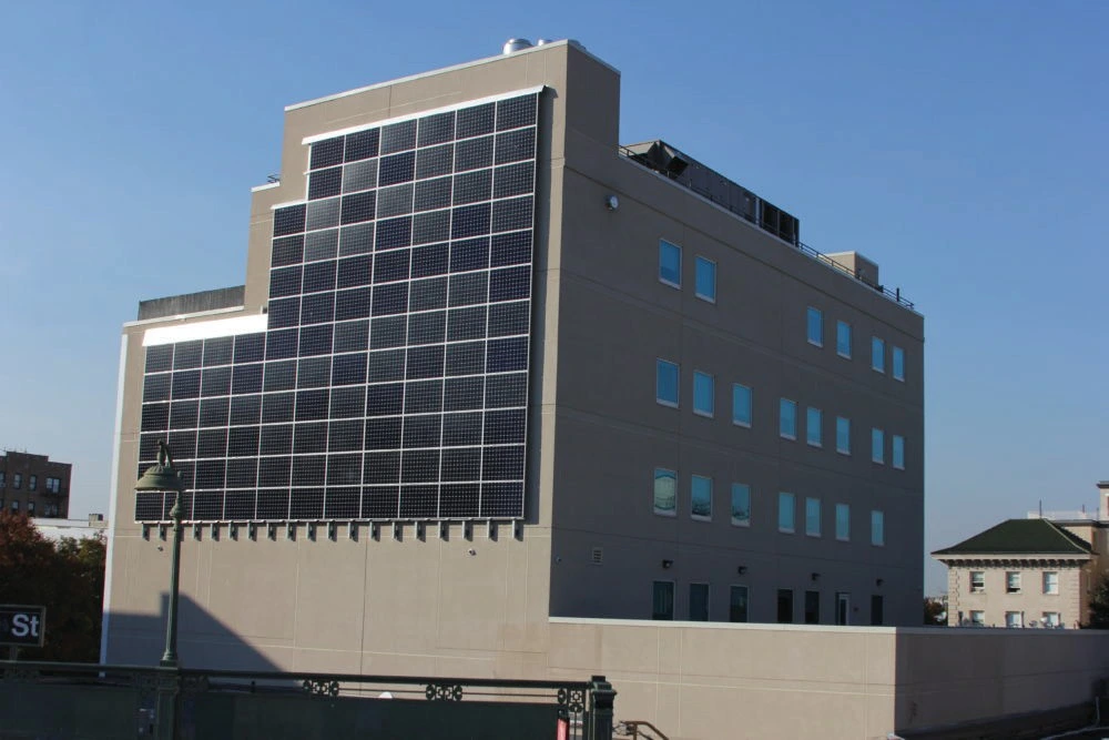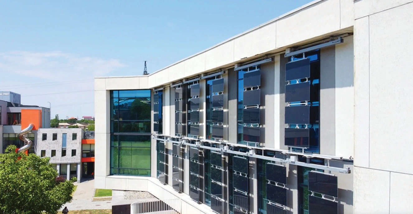 The facade solar panels implemented by Solaron provide the pharmaceutical factory with a solution to three key challenges simultaneously: